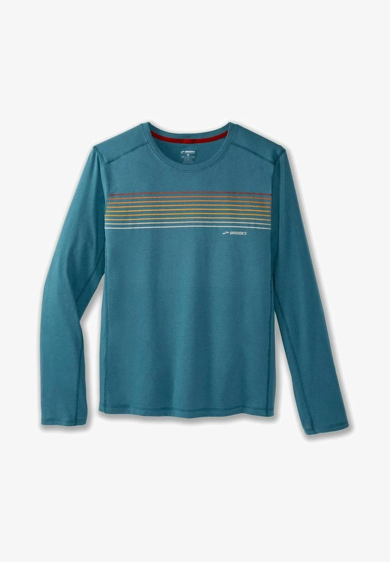BROOKS DISTANCE LONG SLEEVE 2.0 – Langarmshirt – Htr Slate Blue Gradient Stripe