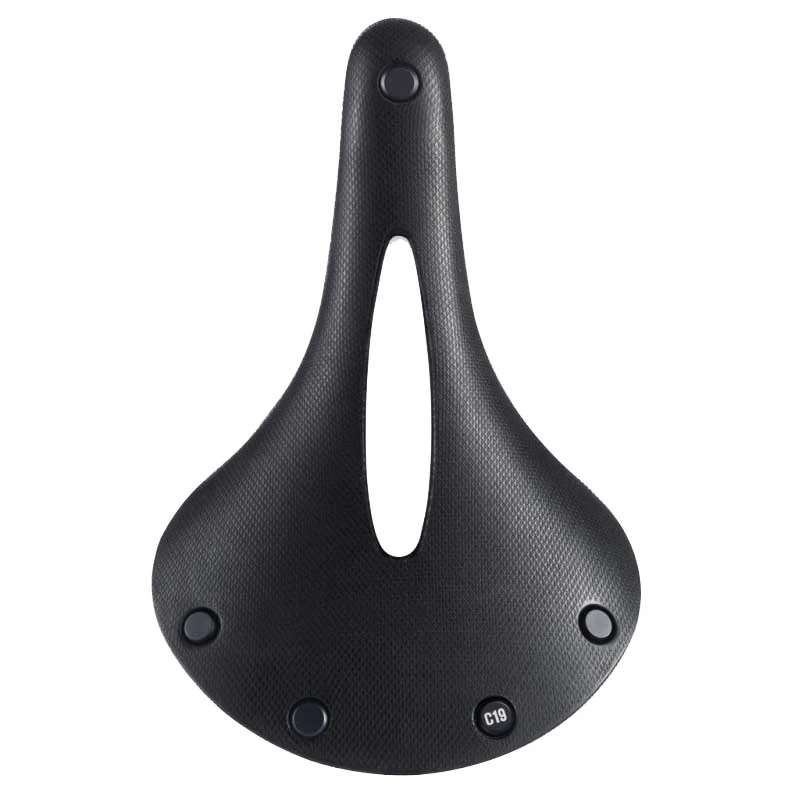 Ein breiterer Sattel für Touren oder Stadtfahrten, der C19 bietet alle Vorteile der Cambium-Linie in einer Breite, die für eine aufrechtere Sitzposition geeignet ist, einschließlich eines Lochs in der Satteldecke, um den Druck, den manche Radfahrer empfinden, zu entlasten. Hergestellt aus einem vulkanisierten Gummi und einer Topplatte aus Bio-Baumwolle, die an einem Rahmen aus Aluminium und hohlen Stahlrohren befestigt sind, bietet der C19 flexible Leistung für sofortigen Komfort und den täglichen Wetterschutz.