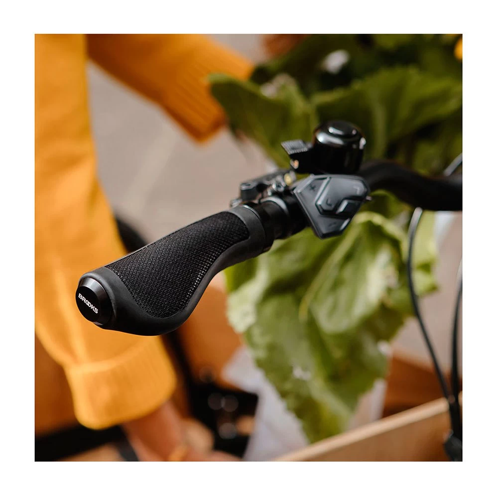 Sportliche Details, die perfekt zu unseren Cambium-Sätteln passen. Brooks Ergonomic Grips sind langlebige und wetterfeste Gummi-Lenkergriffe mit angenehmer Haptik. Nylongewebe und vertikale Rillen an der Unterseite sorgen für erhöhten Komfort und variable Handpositionen. Die Aluminiumklemme ermöglicht eine perfekte Anpassung des Griffs, wobei die ikonische Brooks-Niete am Lenkerende für einen eleganten letzten Schliff sorgt.