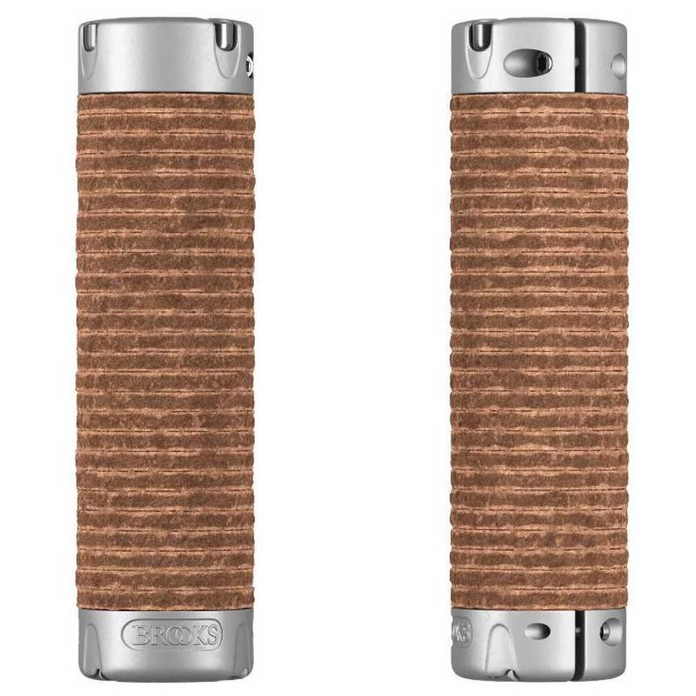 In der Brooks-Tradition bestehen unsere Griffe aus Naturleder, dem gleichen langlebigen Leder, das auch für unsere Satteloberteile verwendet wird. Jeder Griff besteht aus einem Stapel Lederunterlegscheiben, die aus dem Schrott unserer Satteloberteile geschnitten wurden. Diese Unterlegscheiben werden von 3 Speichen zusammengehalten, sodass der Griff auf die gewünschte Länge eingestellt werden kann. Die Standardlänge jedes Griffs beträgt 130 mm, aber jeder Griff kann unabhängig auf die gewünschte Länge gekürzt werden. Die Griffe werden in einer Box mit kürzeren 80 mm Speichen geliefert, um sie noch kürzer zu machen. Hergestellt in Italien.