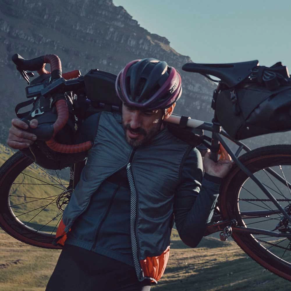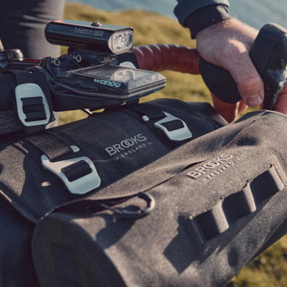 Die Scape Lenkerrolle wurde für Abenteuer gebaut und ist eine Fahrradverpackungstasche aus zwei separaten Elementen: einem Holster und einem 100% wasserdichten herausnehmbaren Packsack mit zwei Innenfächern aus leichten, wasserdichten Materialien und rundum wetterfesten Details (IP64-zertifiziert). Das Holster wurde speziell für Langstrecken-Touren- und Bikepacking-Rennen entwickelt und lässt sich leicht am Falllenker (Straße und Schotter) und am geraden Lenker (MTB) befestigen. Es wird über zwei Gurte mit Aluminiumschnallen befestigt, um eine schnelle und zuverlässige Montage zu ermöglichen. EVA-Abstandshalter ermöglichen eine einfache Montage Durchgang von Kabeln und ein vollerer Griff. Ein zusätzlicher Clip dient zum Befestigen des Gurtbandes und zum Vermeiden von Lockerungen. Eine doppelte Gänseblümchenkette verläuft durch das Holster, um sperrigere Gegenstände aufzunehmen.
