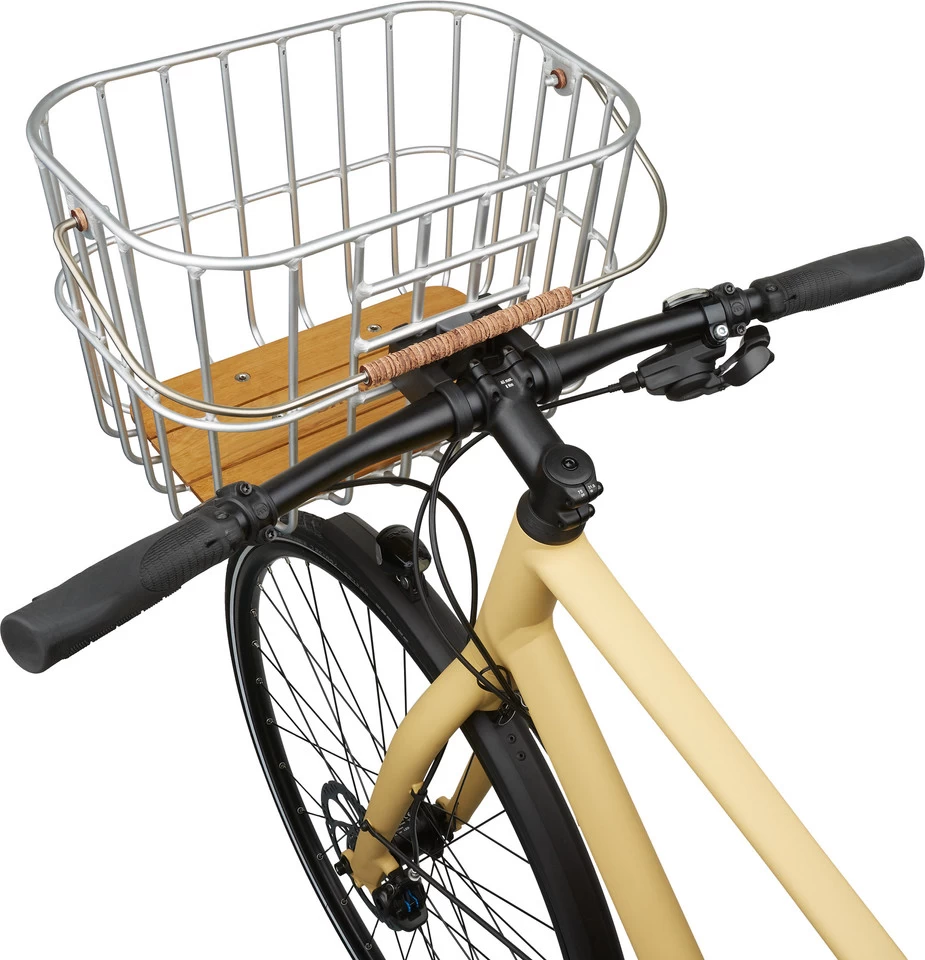 Der Hoxton Basket Fahrradkorb von Brooks verleiht Deinem Rad den Stil vergangener Tage, ist aber mit einem modernen KLICKfix Lenkeradapter ausgestattet. Damit alles im Korb verbleibt, befindet sich unten im Drahtkorb eine Bodenplatte aus Holz. Der Ledergriff am praktischen Henkel wird aus den Reststücken der Brooks Sattelfertigung hergestellt.