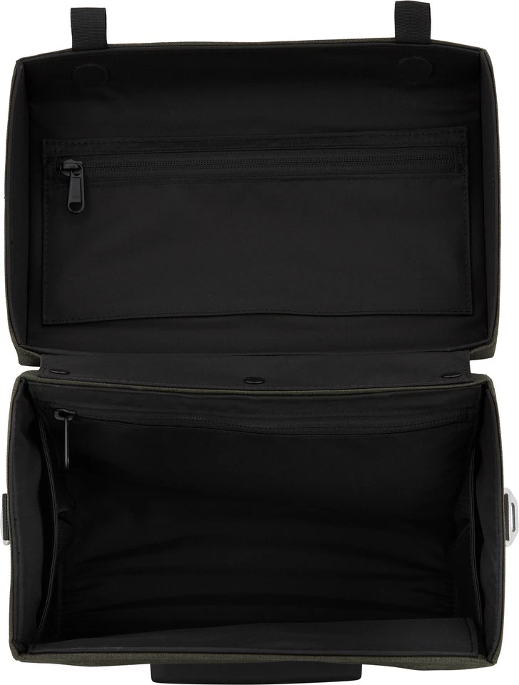 Die Scape Handlebar Case Lenkertasche von Brooks eignet sich hervorragend für lange Touren mit dem Bike. Sie hat ein Fassungsvermögen von 8 Litern, ist außerdem sehr langlebig und wasserdicht. Ausgestattet mit einer KLICKfix-Befestigungsaufnahme ist die Tasche schnell am Lenker montiert sowie bei Bedarf demontiert. Wenn Du sie mit Dir herumtragen willst, beispielsweise zum Einkaufen, bringst Du einfach den Schultergurt an. Damit auch im Innenraum Ordnung herrscht, verfügt das formstabile Case über zwei Reißverschlusstaschen und zwei Netztaschen.