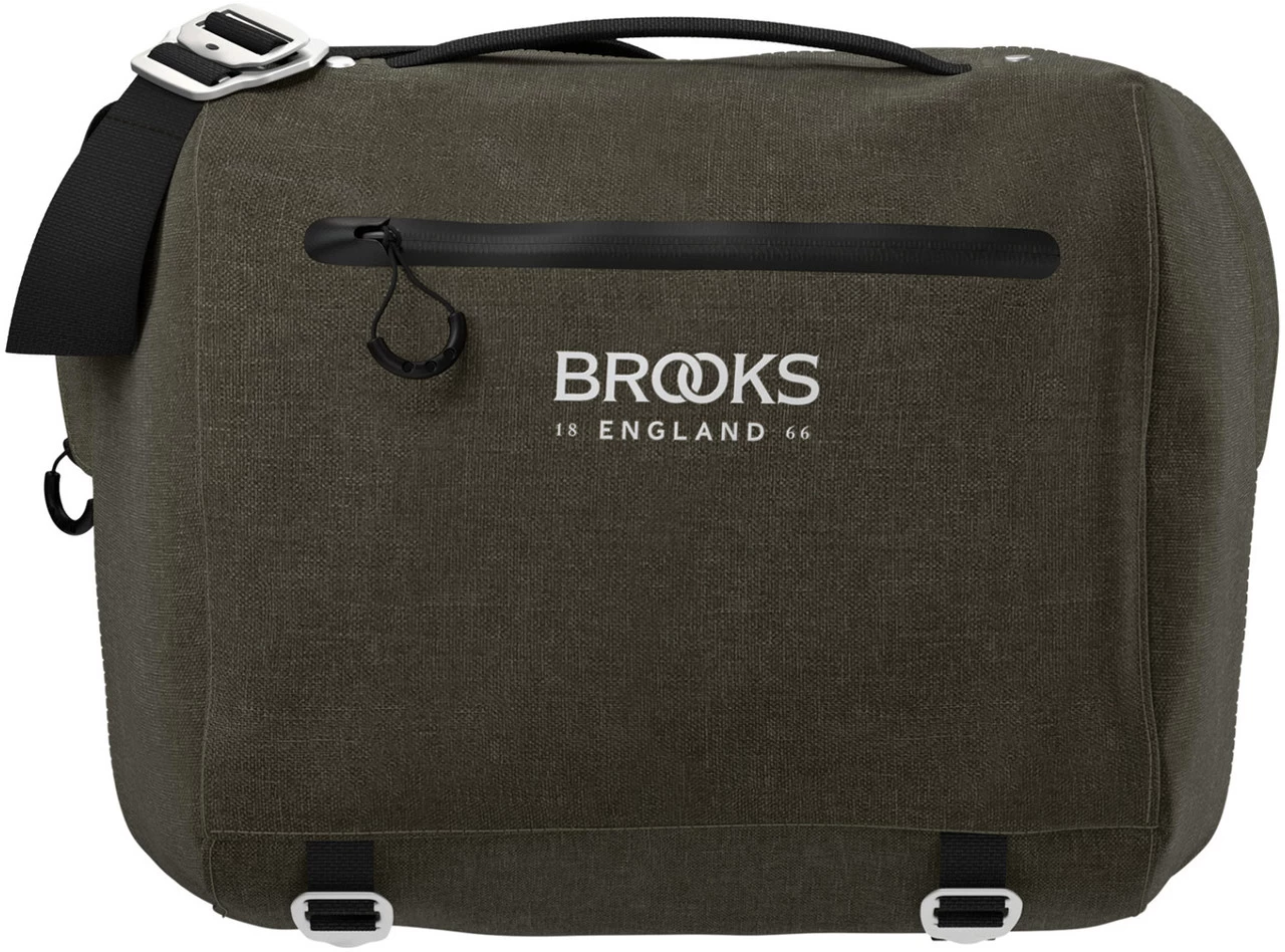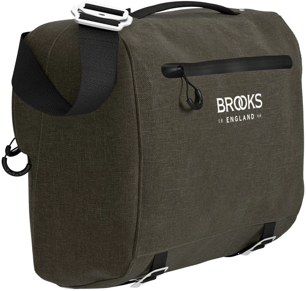 Die Scape Handlebar Compact Bag von Brooks ist eine wasserdichte Lenkertasche mit Laptop-Fach. Besonders Commuter werden die Tasche mit praktischer KLICKfix-Befestigung und Schultergurt zu schätzen wissen.